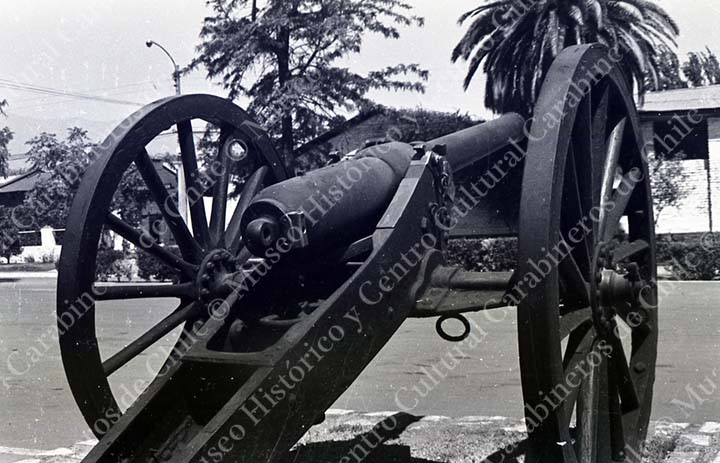Cañón Armstrong de campaña ubicado en el frontis del antiguo Casino de Suboficiales.
