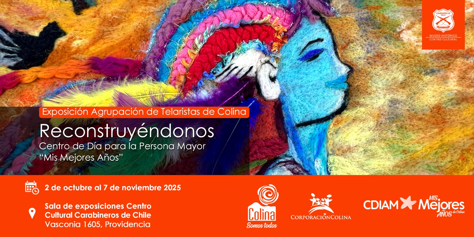 El Museo Histórico y Centro Cultural invita a la comunidad a recorrer la muestra temporal Reconstruyéndonos, creada por integrantes de la agrupación Telaristas de Colina, pertenecientes al Centro Diurno del Adulto Mayor “Mis mejores años”.